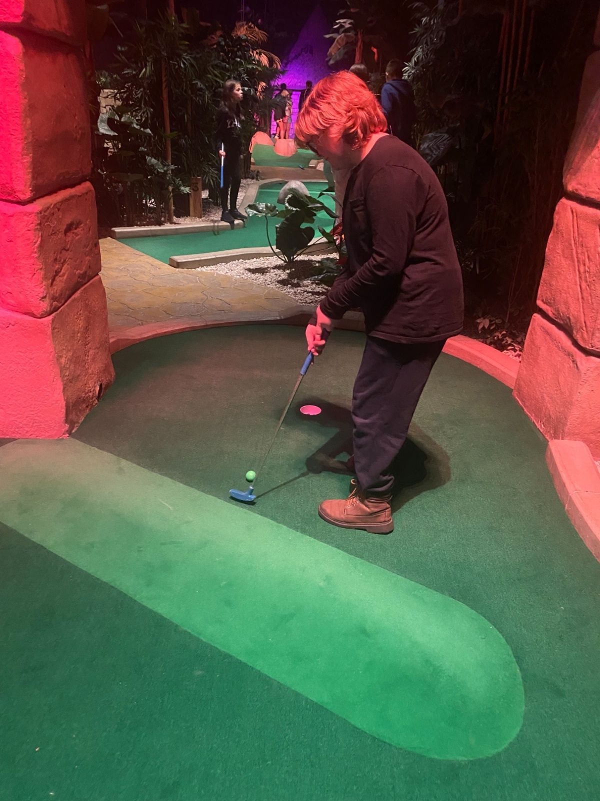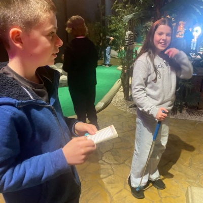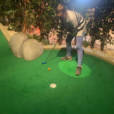 After arriving at Cardiff Central station, the children had their lunch while Miss Ferguson took all the luggage to centre. They then went to the National Museum Cardiff before walking to the Urdd centre. After tea they headed back to the city centre for a game of crazy golf!