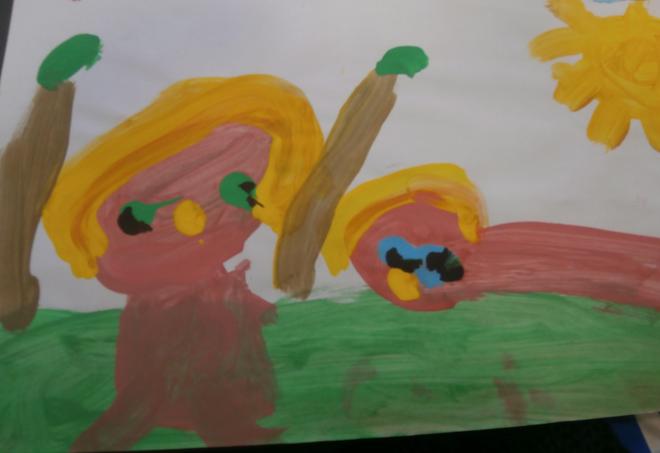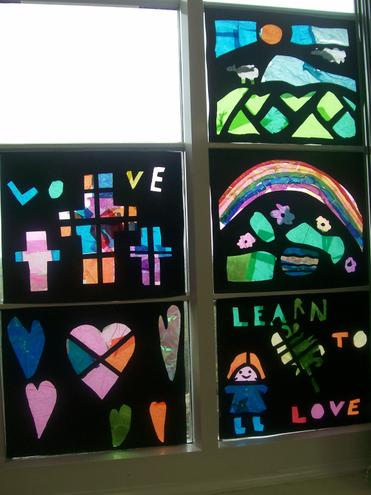 Our stained-glass window, inspired by our visit to church and our work on Bible stories.