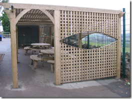 The P.T.A funded the purchase of benches and a pergola to provide a sheltered seating area in the playground.