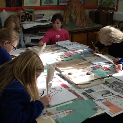 Class 2 Art Lesson - Using a feather quill to do line drawing with link. 4 March 2022