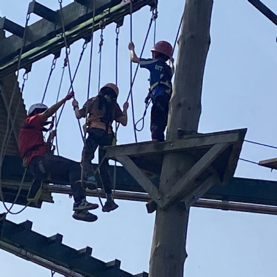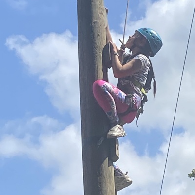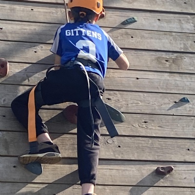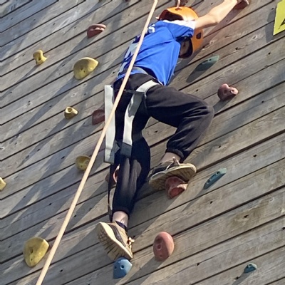 Day 3- Yesterday they all walked over the long wooden bridge to Barmouth after breakfast and went scrambling over rocks and after lunch out on the hills, they did climbing with harnesses on. Everyone did very well.