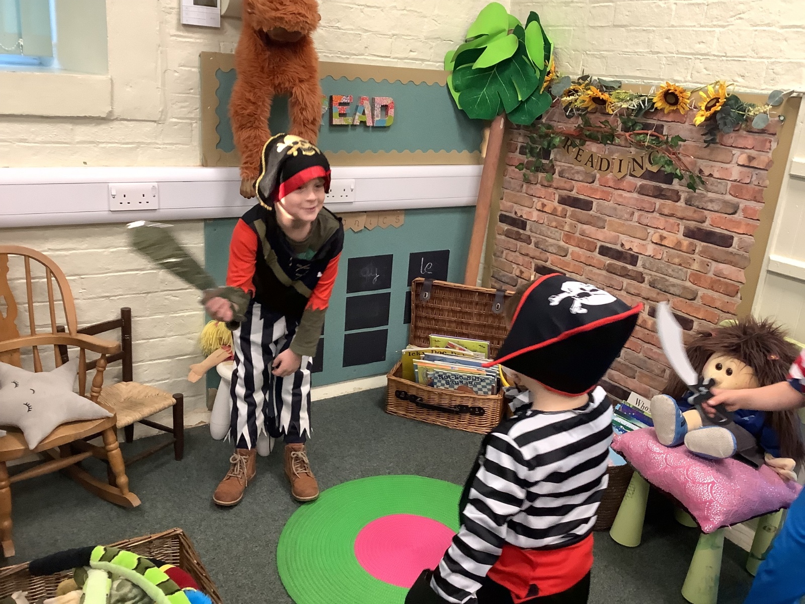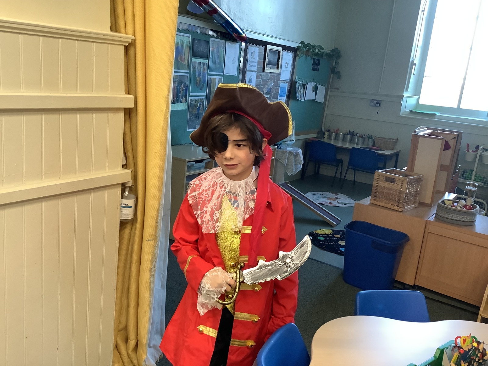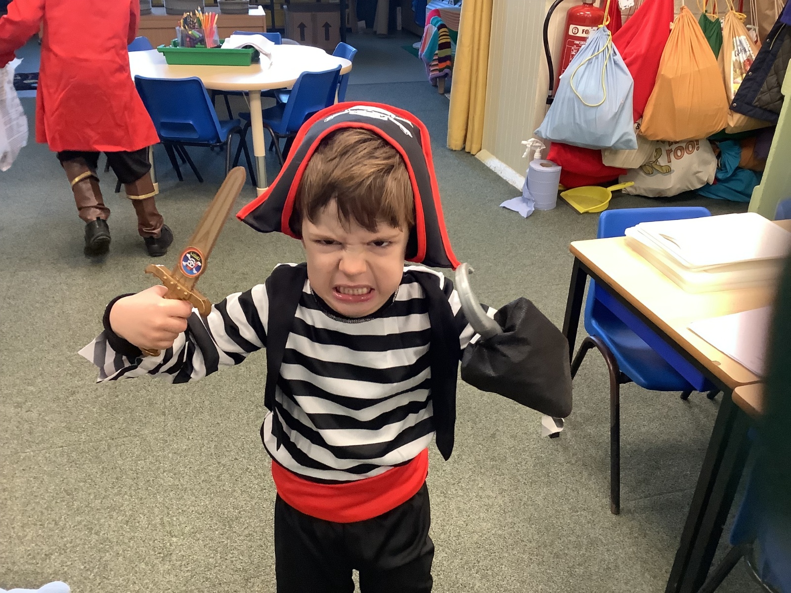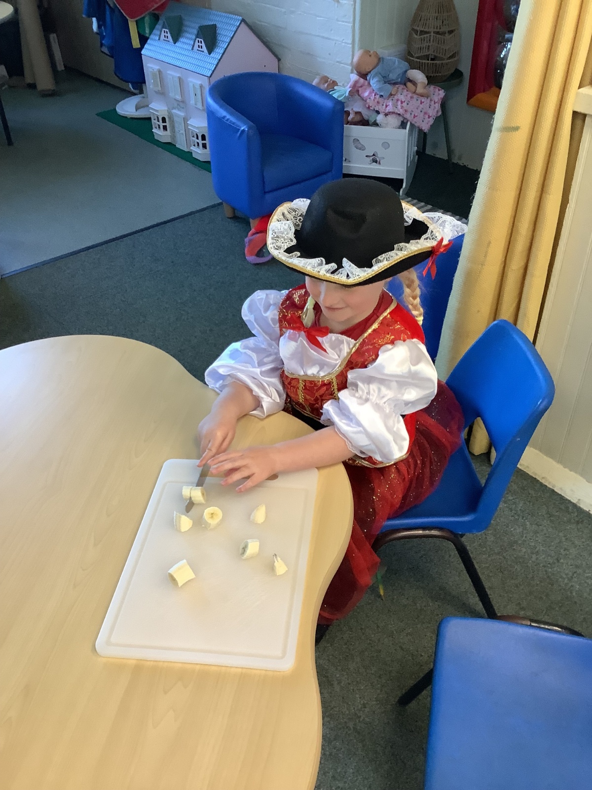 This half term we have been learning about pirates. On Tuesday 25th November we had a pirate day where we all came to school dressed as pirates. We raided Class 2 for treasure and made fruit kebabs.